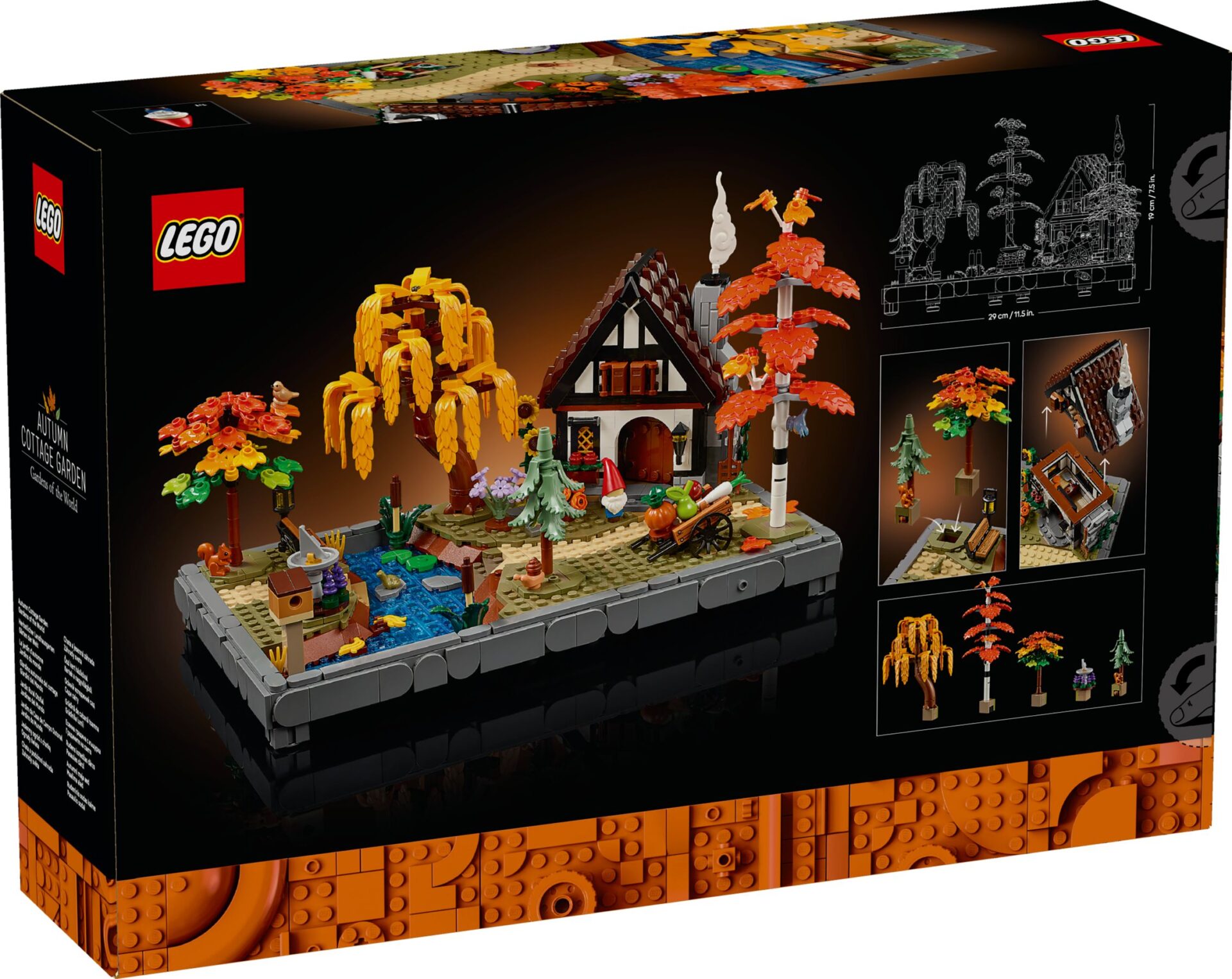 • ABMESSUNGEN: LEGO Icons Herbstlicher Landhausgarten ist ein 19 cm hohes, 29 cm breites und 18 cm tiefes Modell aus 1.102 Teilen