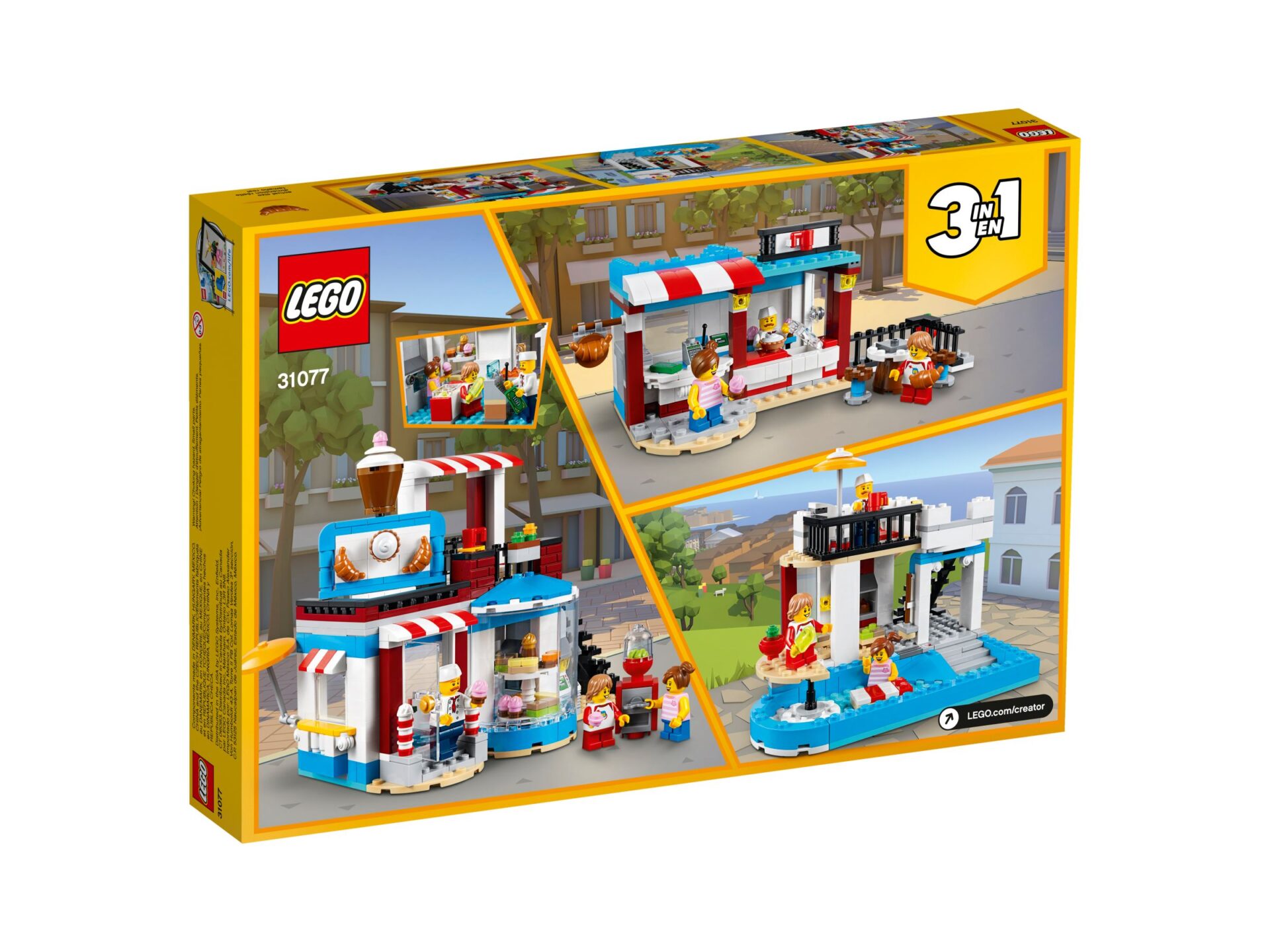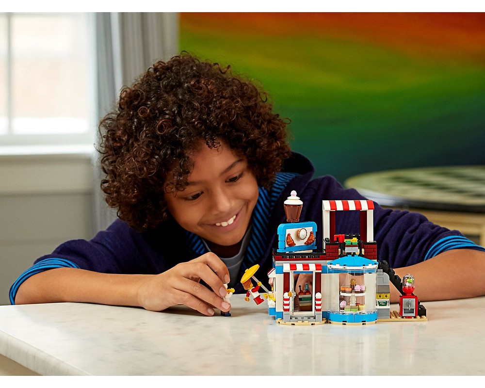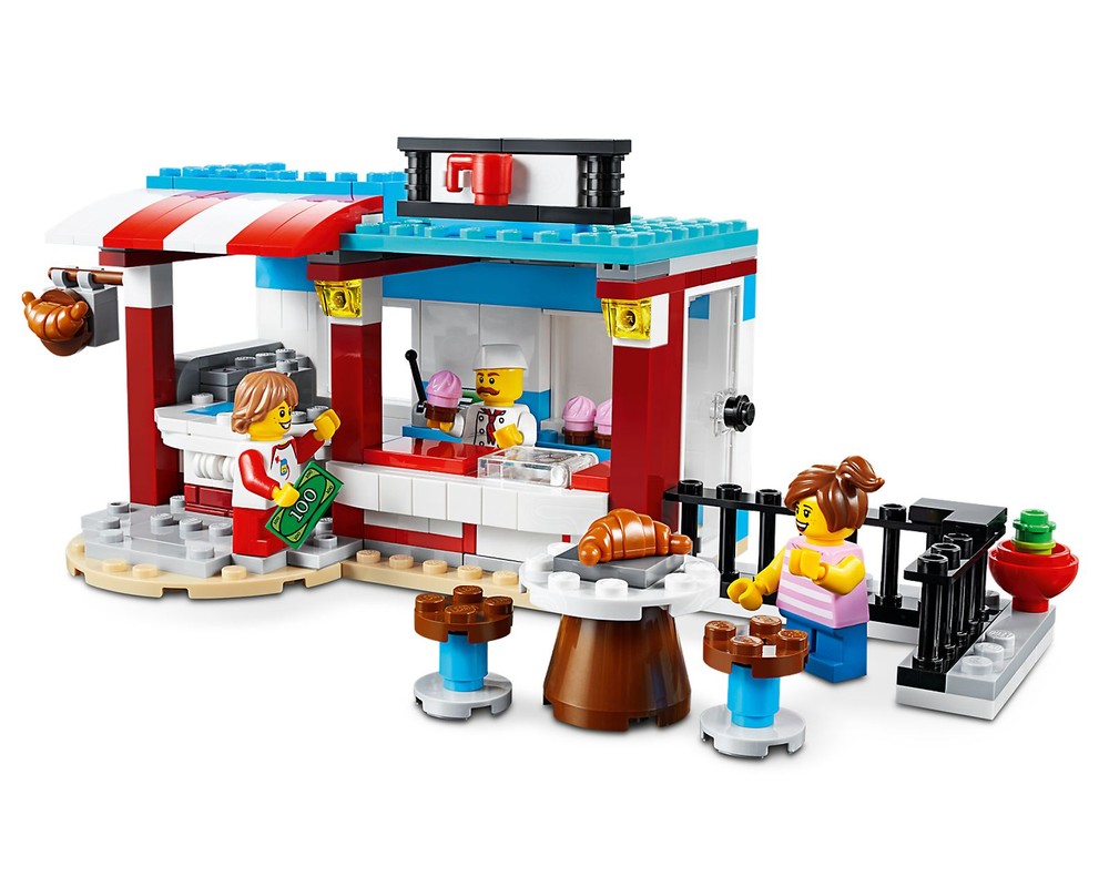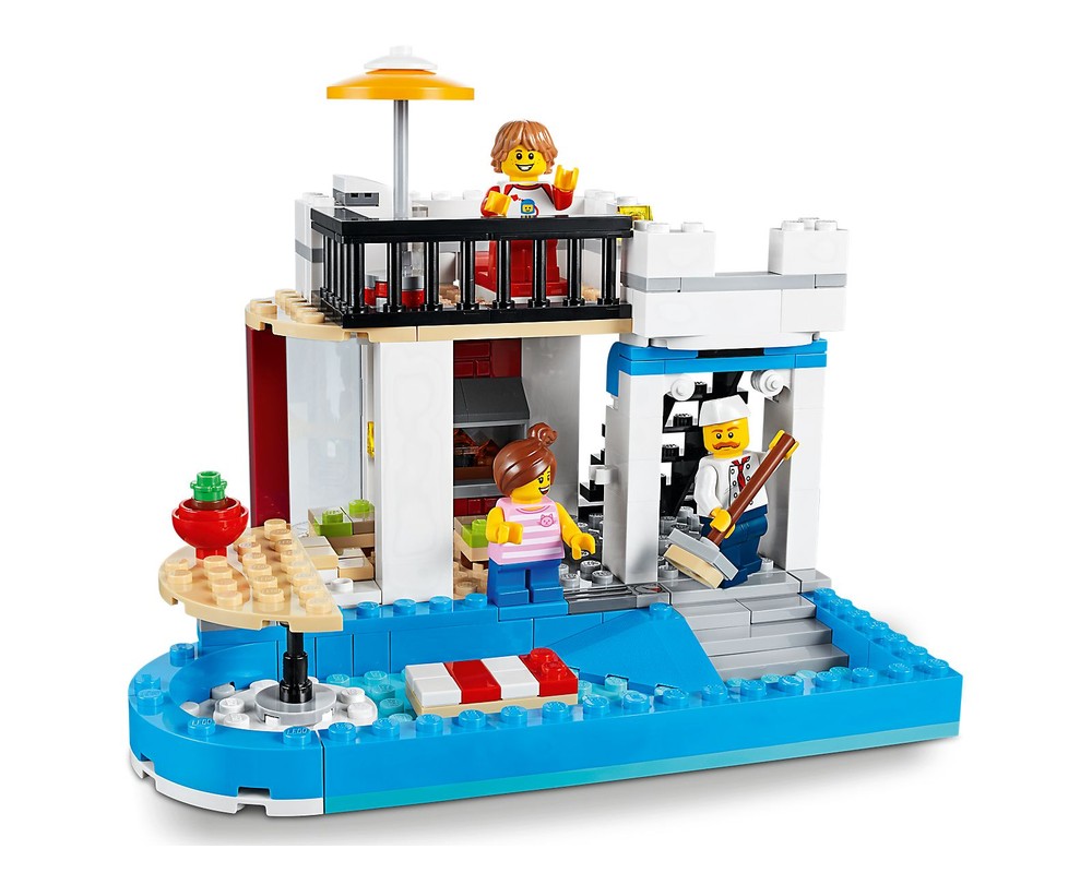 - Dieses 3in1-Modell lässt dich noch weitere Abenteuer erleben: Baue die Konditorei um und erhole dich im Poolhaus oder eröffne ein gemütliches Eckcafé.