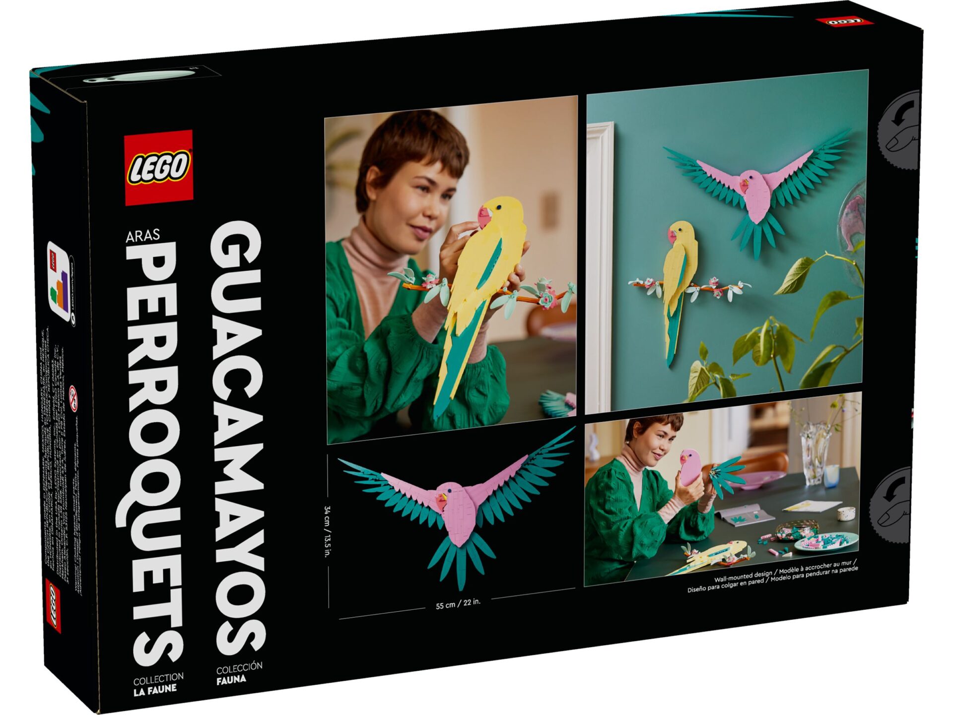 LEGO Art Die Fauna Kollektion – Aras (31211) ist ein Bauset, mit dem du dir ein kleines Stück Natur in dein Zuhause holst. Dieses stylishe mehrdimensionale Kunstwerk aus LEGO Steinen stellt 2 exotische Aras dar. Der gelbe Ara sitzt auf einem mit Blumen verzierten Ast, der pinke Papagei schwebt dagegen mit ausgebreiteten Flügeln durch die Luft. Dieser Wand- schmuck ist ein tolles Geschenk. 2 Bauanleitungen liegen bei, damit erwachsene LEGO Fans die Papageien zusammen mit einem Freund oder Partner bauen und das ebenso entspannende wie gesellige Erlebnis zu zweit genießen können.