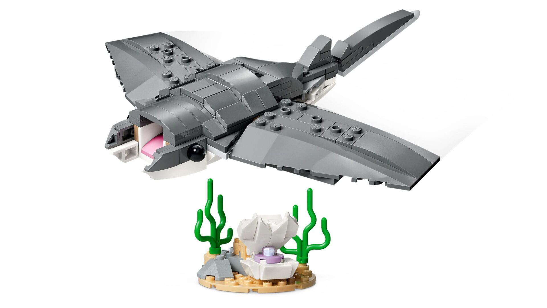 • STÄNDER MIT ZUBEHÖR ZUM SPIELEN UND AUSSTELLEN: Zum Hai gehören neben einem Ständer auch eine Schatztruhe und eine Krabbe. Der Seeteufel hat einen Ständer mit Meerespflanzen, und zum Mantarochen gehört ein Ständer mit Muschelschale