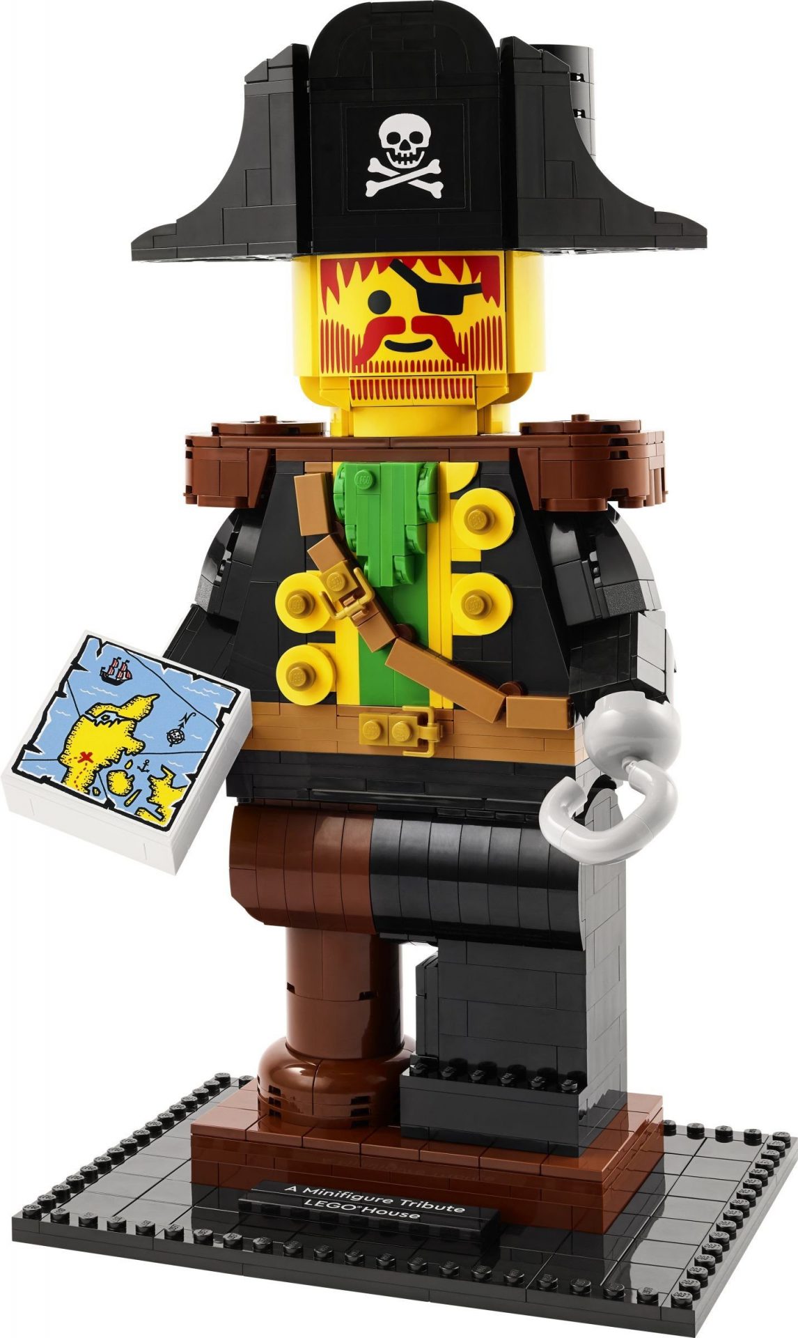 • Große baubare Minifigur: Diese Hommage an die Piraten-Minifigur ist 6 Mal so groß wie eine normale Minifigur und steht auf einer Platte mit 2 bedruckten Elementen