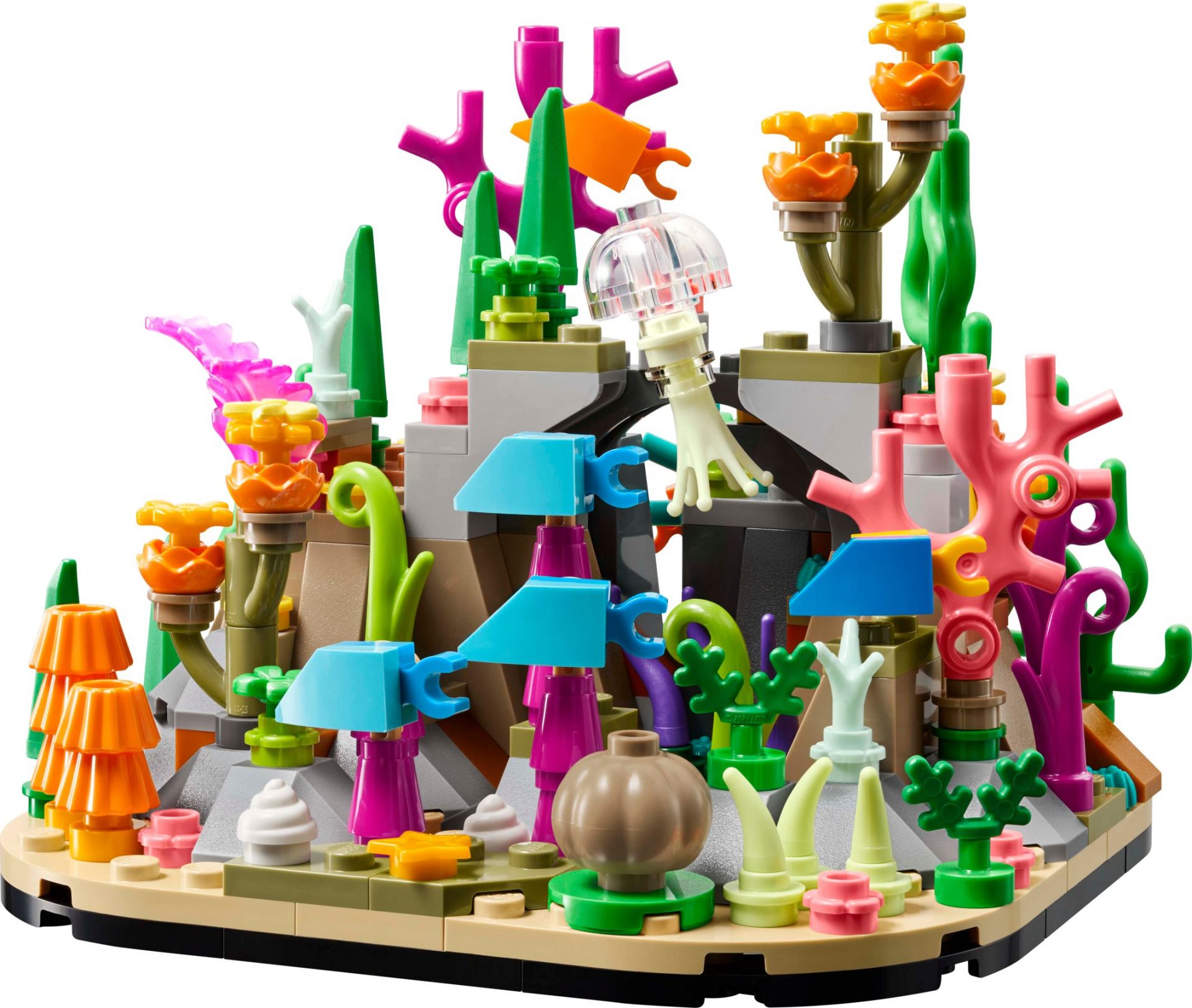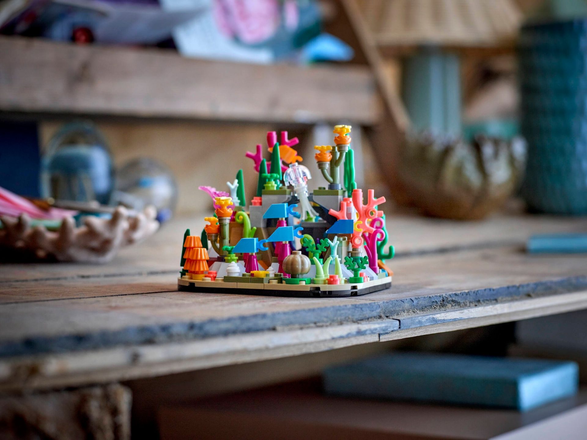 - Dieses LEGO Korallenriff-Diorama ist ein Modell zum Spielen und Ausstellen. Fische und andere Meeresbewohner stellen eine Unterwasserwelt dar, in der es viele Details zu entdecken gibt