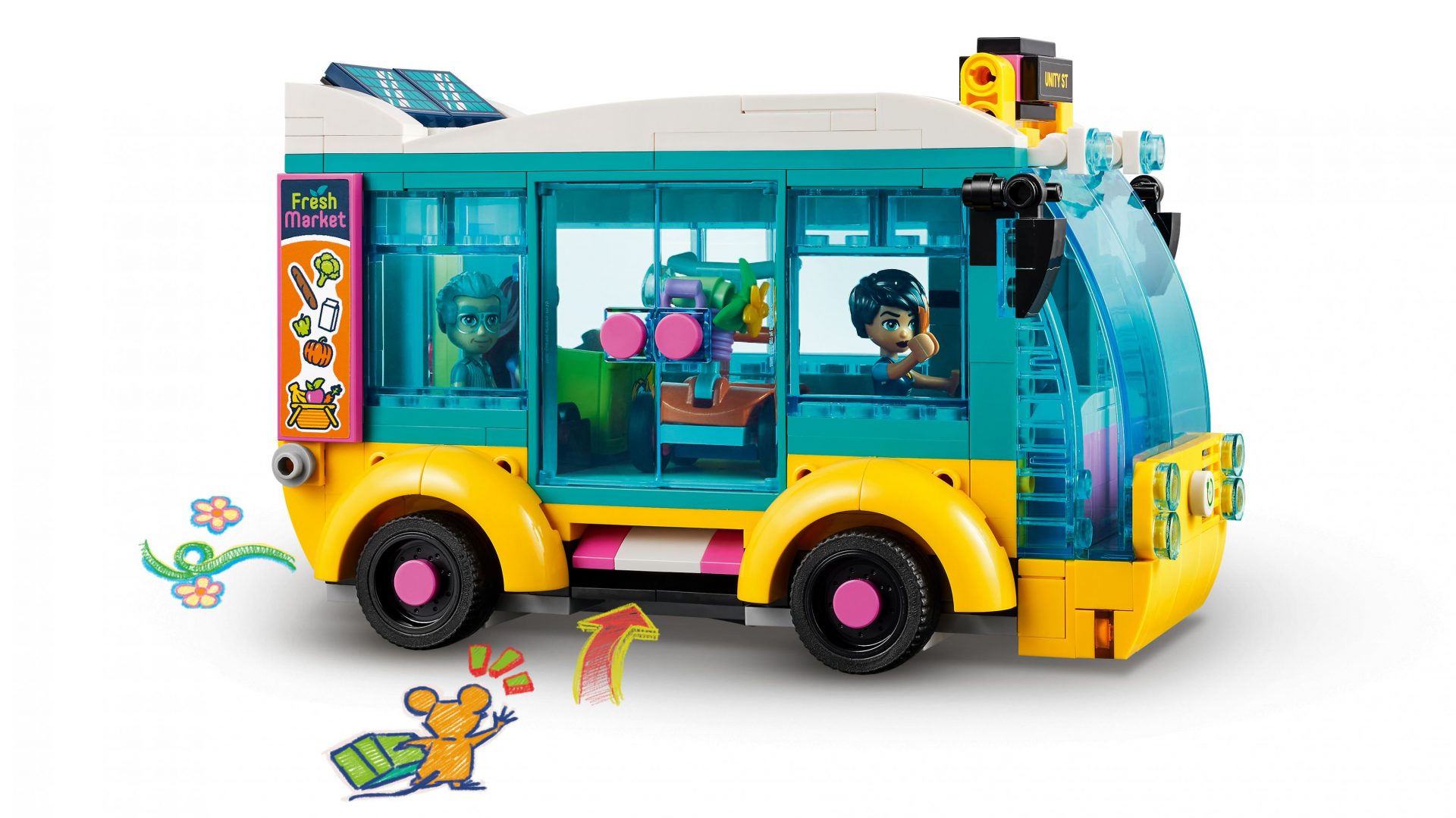 - 3 Spielfiguren und Zubehör: Das Set beinhaltet die LEGO Friends Spielfigur Paisley sowie den Busfahrer und einen Fahrgast mit Elektromobil