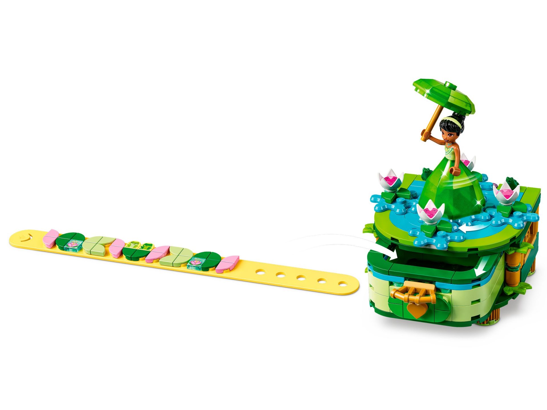 Begleite die Disney Heldinnen Aurora und Tiana sowie Merida aus dem Film von Disney und Pixar in ihren juwelenfarbenen Diamantkleidern auf spannende Abenteuer! Dreh das Seerosenblatt, um Tiana tanzen zu lassen. Öffne dann die Schublade und nimm das LEGO Armband heraus, um es zu verzieren. Schließ dann Auroras Truhe auf und sieh hinein. Sorge mit Meridas Turm für Ordnung auf deinem Schreibtisch.
