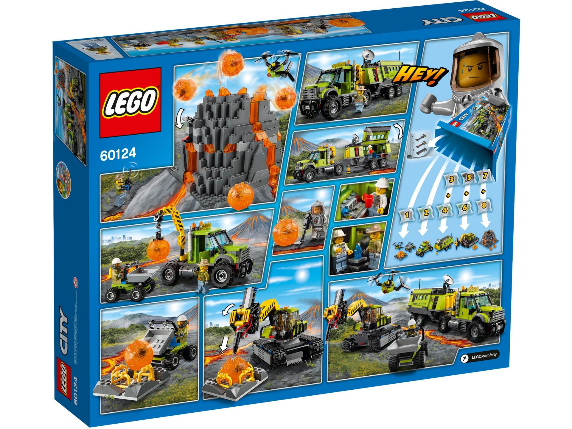 Fahr die mobile Einsatzzentrale zum Vulkan und geh mit der Drohne auf Erkundungstour. Das Set enthält zudem einen Bagger, 6 Minifiguren und Zubehör.