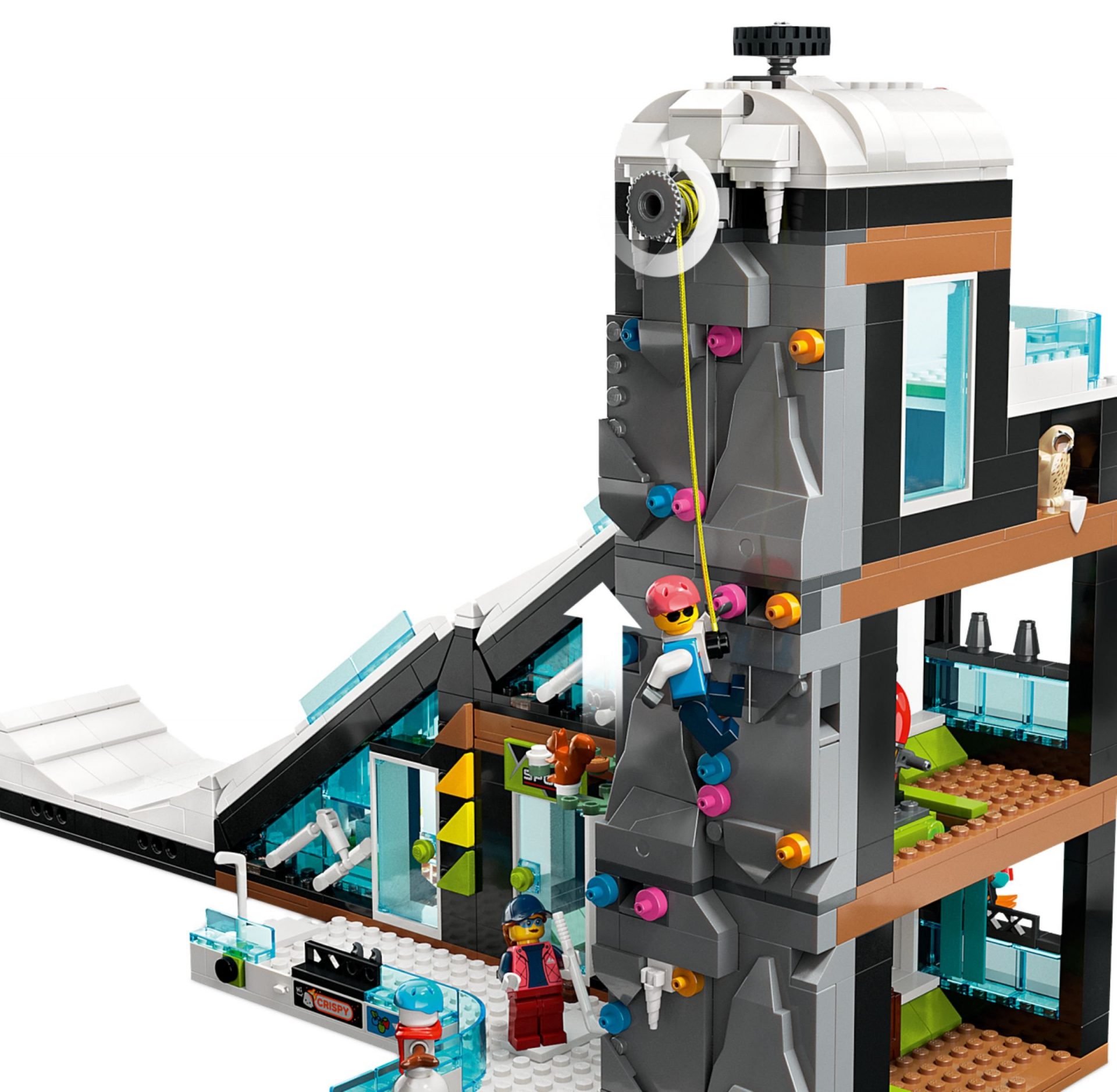 - Inhalt der Box: Alles, was Kinder brauchen, um ein 3-geschossiges Gebäude mit Wintersport-Shop, Café und Skipiste zu bauen, sowie 8 Minifiguren mit Skizubehör, ein Schneemann, eine Eule und ein Eichhörnchen