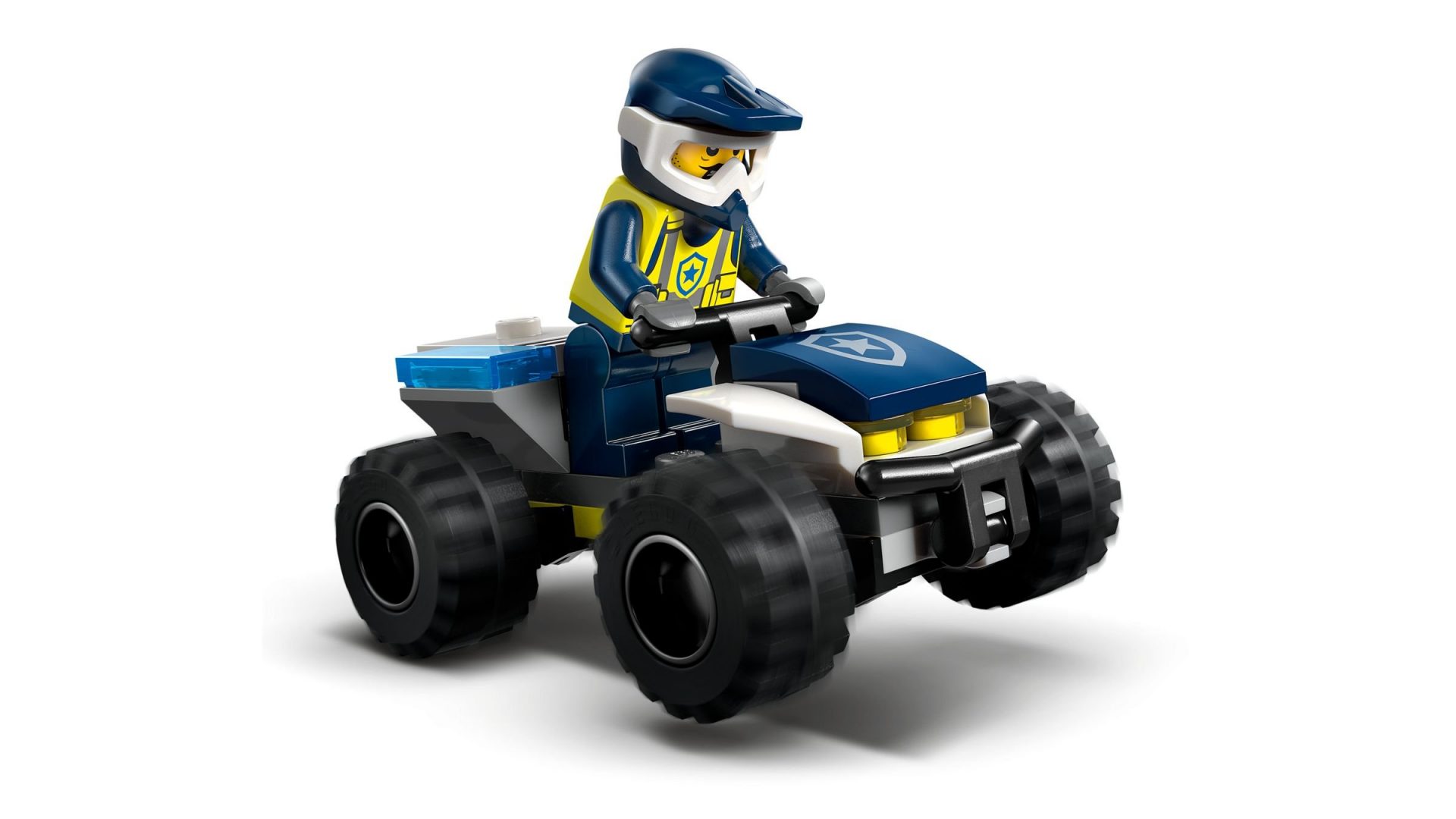 Ein Ganove in einem aufgemotzten Pickup flüchtet mit einem Tresor voller Goldbarren und Diamanten durch die Landschaft vor LEGO City. Schick das Polizei-Quad und die Drohne los, steig in den Geländewagen und jage dem Dieb hinterher. Donnere mit deinem tollen Flitzer durchs Gelände. Aber sei vorsichtig: Ein weiterer Ganove mit einem Felsenkatapult liegt schon auf der Lauer!