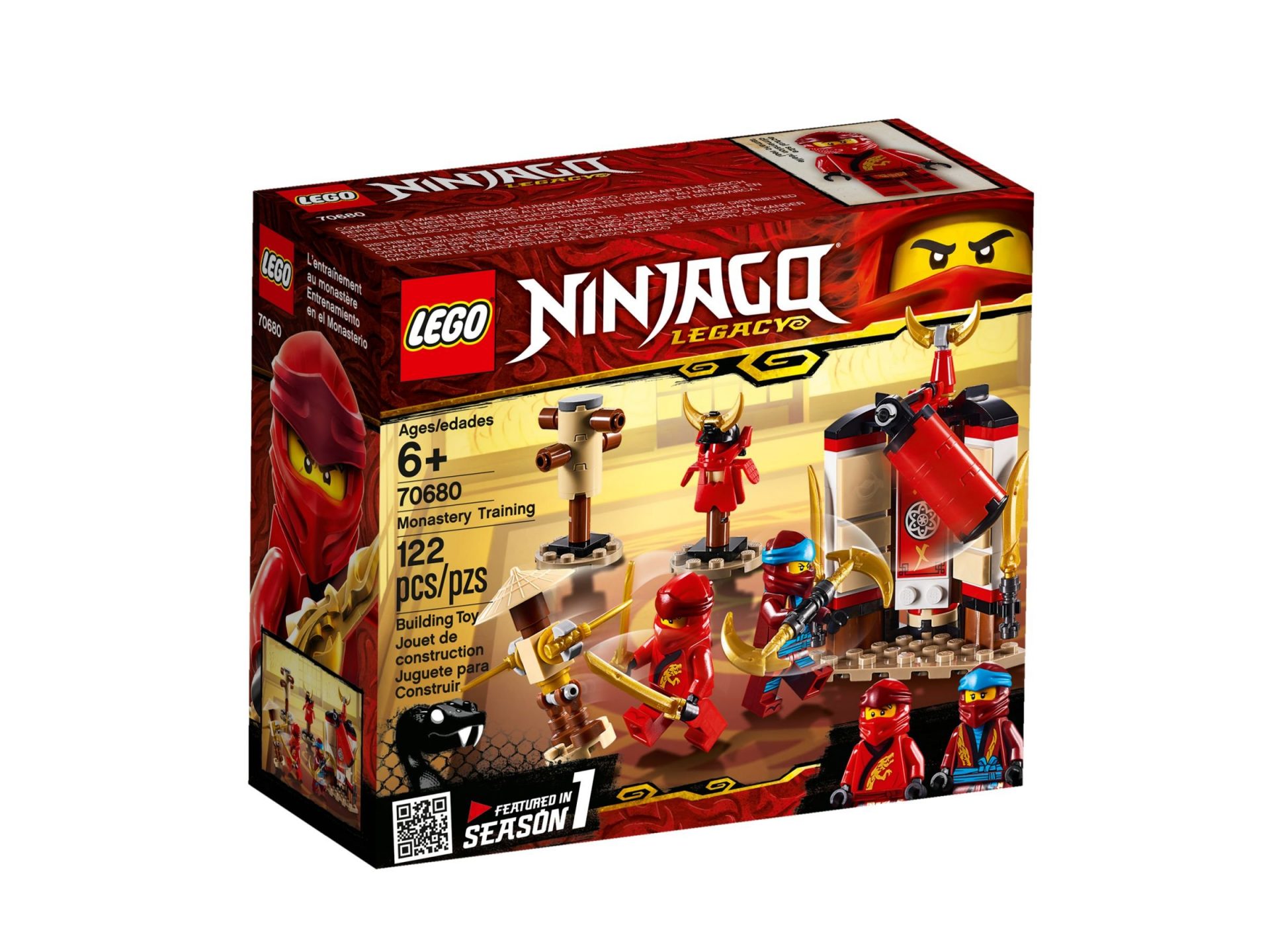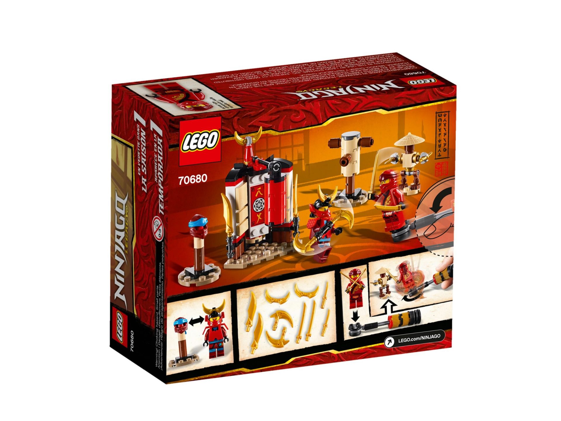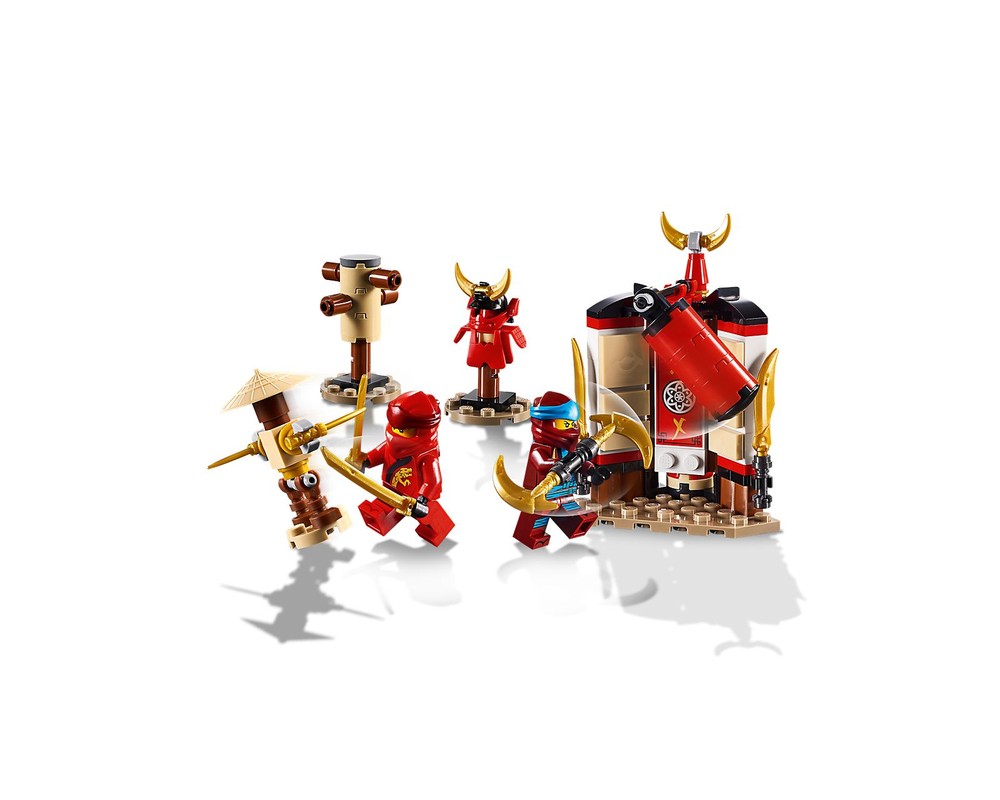 - Das LEGO NINJAGO Set enthält eine Ninja-Trainingsstation zum Zusammenbauen mit drehbarem Sandsack, 2 goldenen Kuan-Tao-Klingen und einer dekorativen Mondklinge, einer Übungspuppe mit 2 abnehmbaren Dolchen, einer Übungspuppe im Holzstil und einer Ninja-Plattform, auf der Minifiguren stehen können.