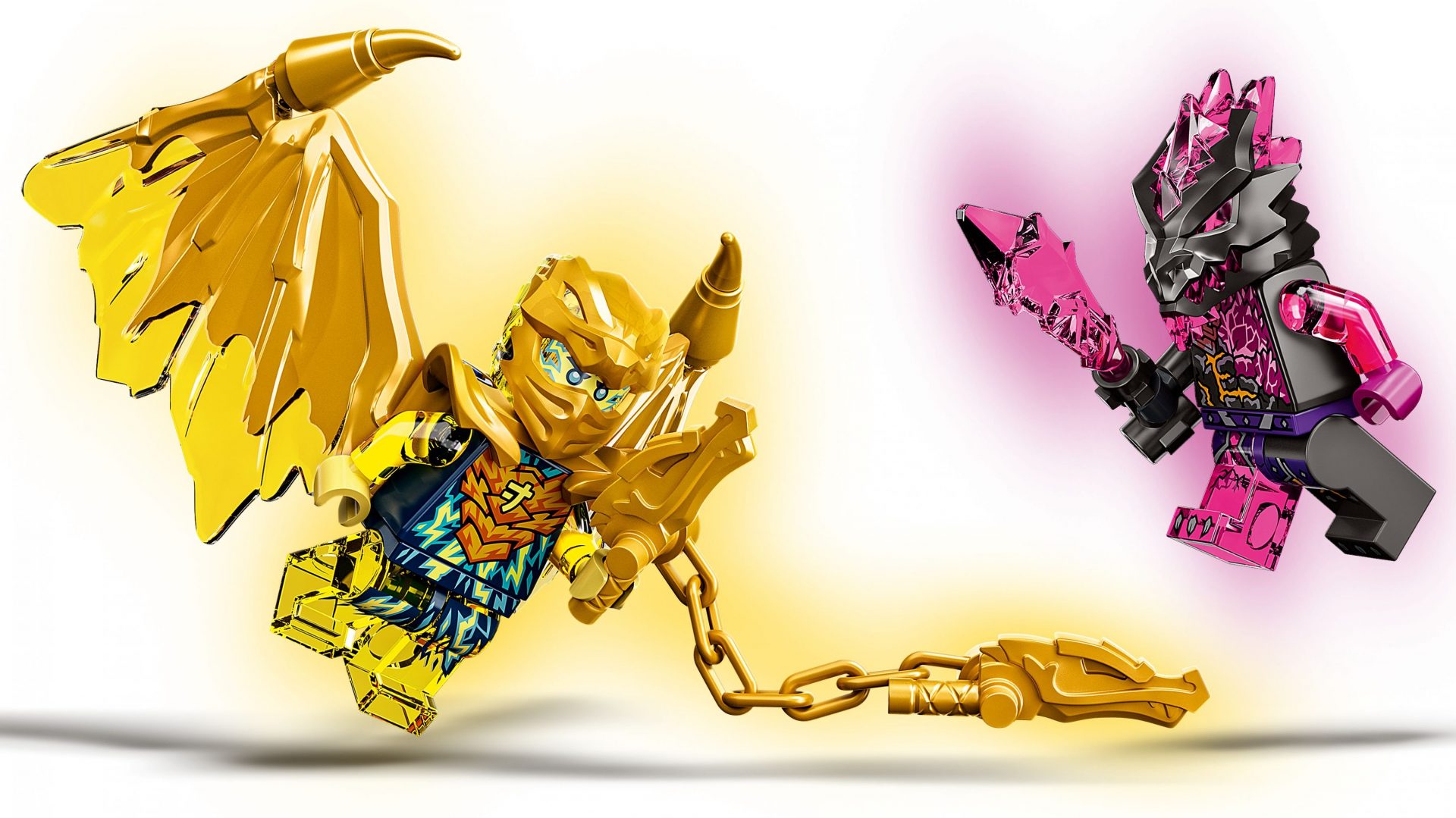 - 2 Minifiguren: Beinhaltet Golddrachen-Jay mit seinem Elementar-Goldnunchaku und 2 stachelbewehrten Goldflügeln sowie einen gefährlichen Vergeltungsstein-Krieger mit Spielzeugschwert