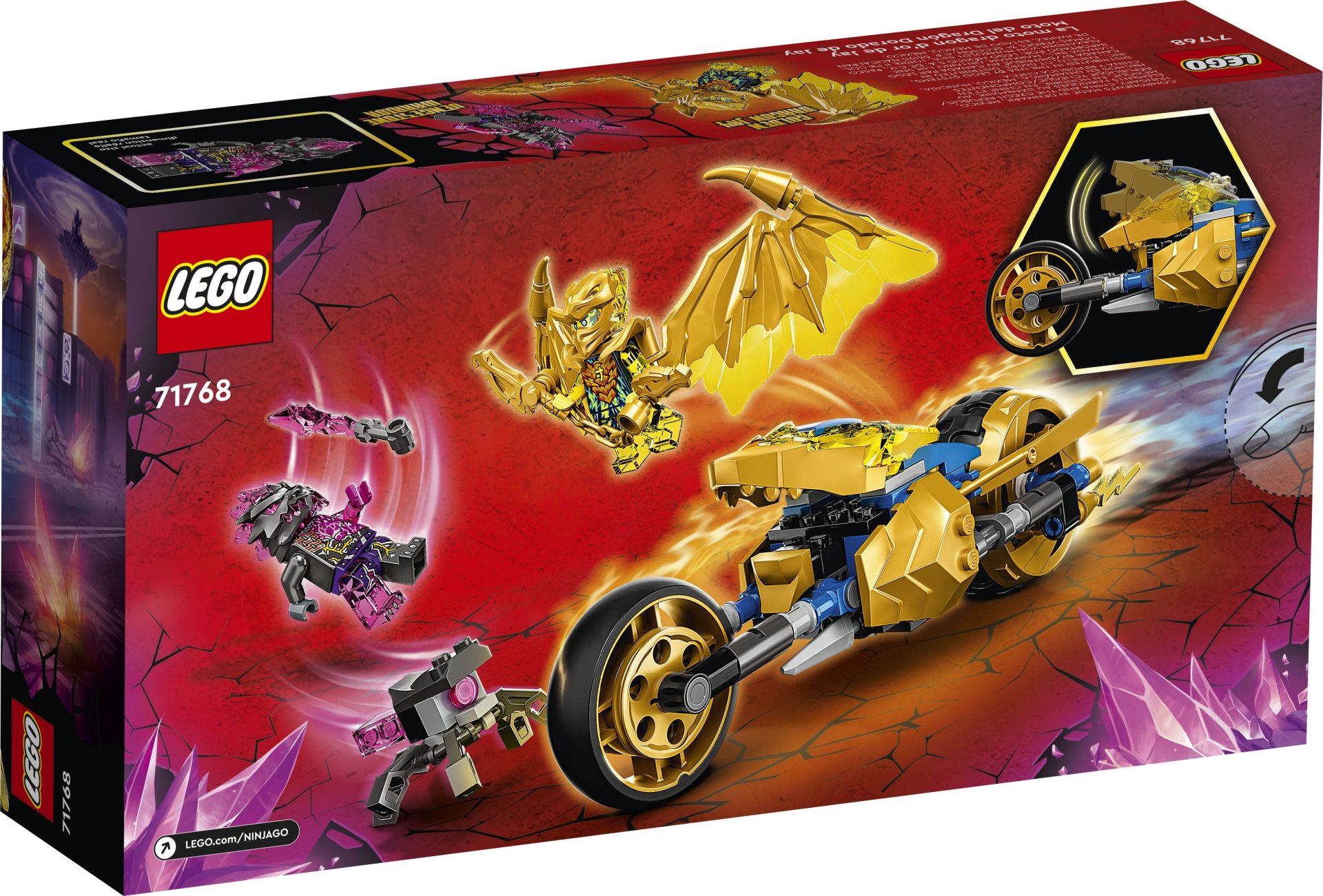 - NINJAGO Motorrad-Spielset: Mit dem LEGO NINJAGO Set „Jays Golddrachen-Motorrad“ (71768) können Kinder atemberaubende Verfolgungsjagden und packende Duelle aus der TV-Serie NINJAGO: Crystallized nachstellen