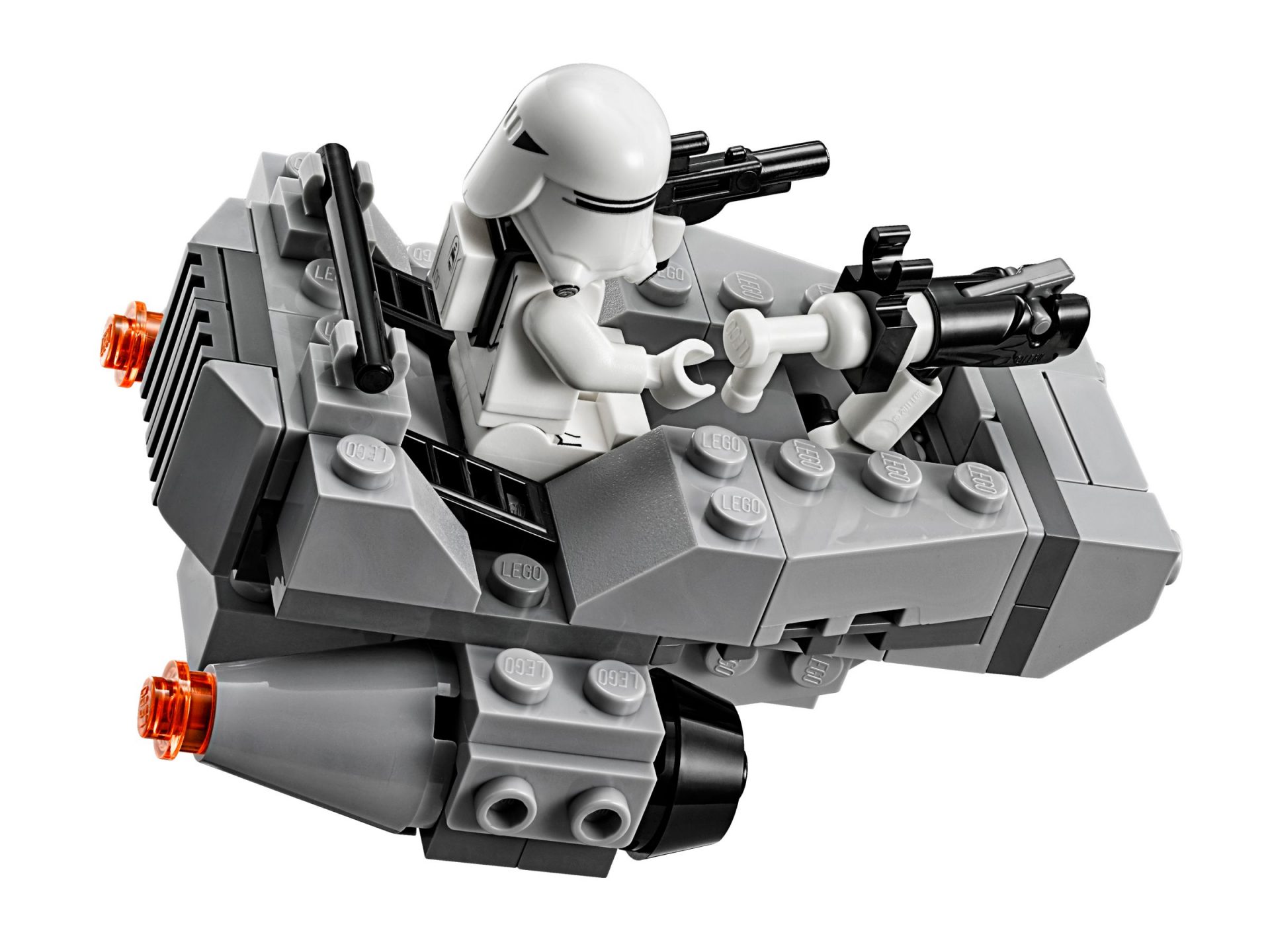 Donnere mit der Microfighter-Version des First Order Snowspeeder los, um den Gegner abzufangen. Der Snowspeeder verfügt über große Triebwerke, einen rotierenden Shooter sowie genügend Platz, um die beiliegende Minifigur eines First Order Snowtrooper aufzunehmen.