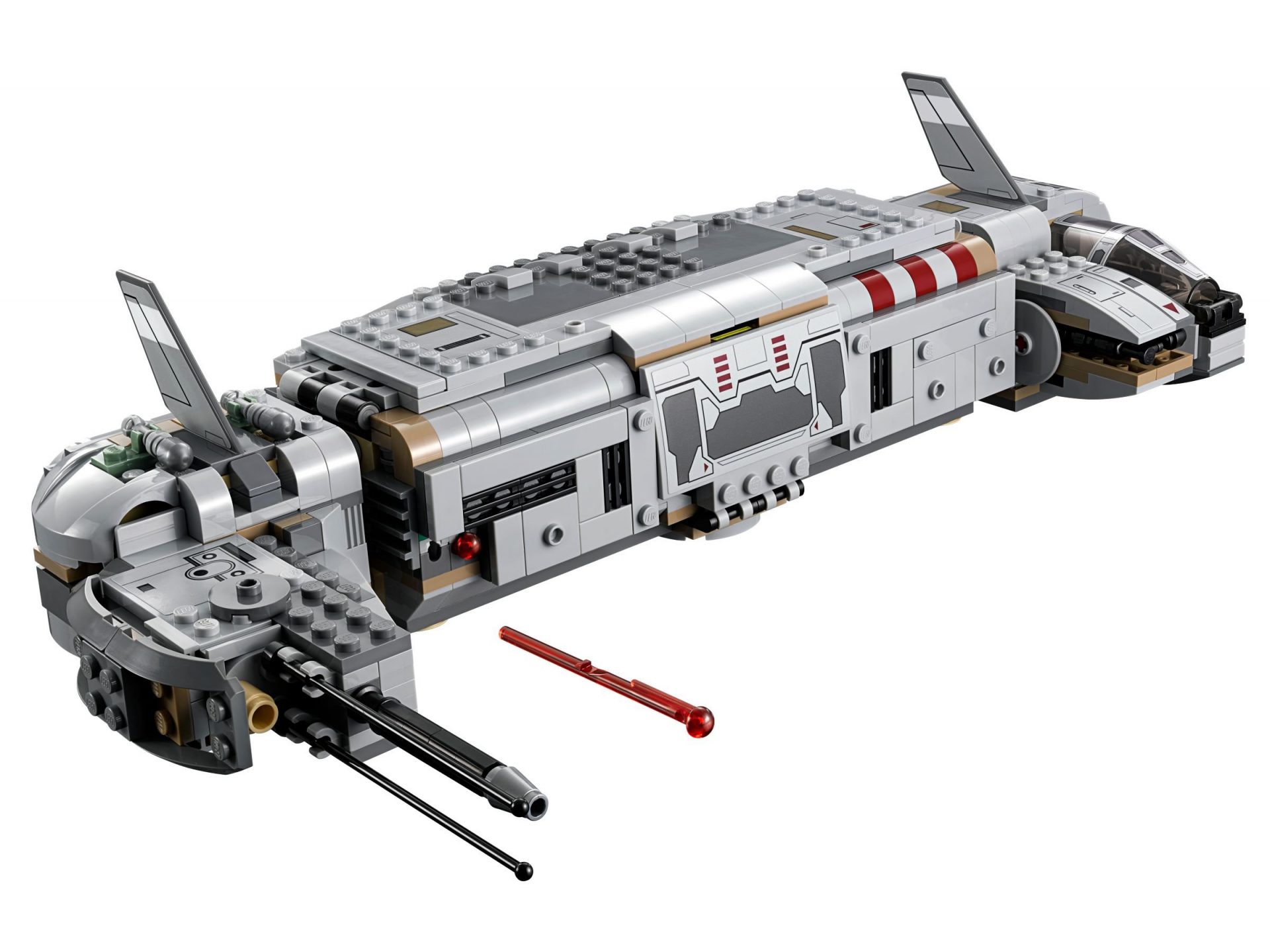 - Verfügt über aufklappbare Dachluken und ein aufklappbares Cockpit, eine absenkbare Rampe, Platz für 4 Minifiguren im Inneren sowie federunterstützte Doppel-Shooter.