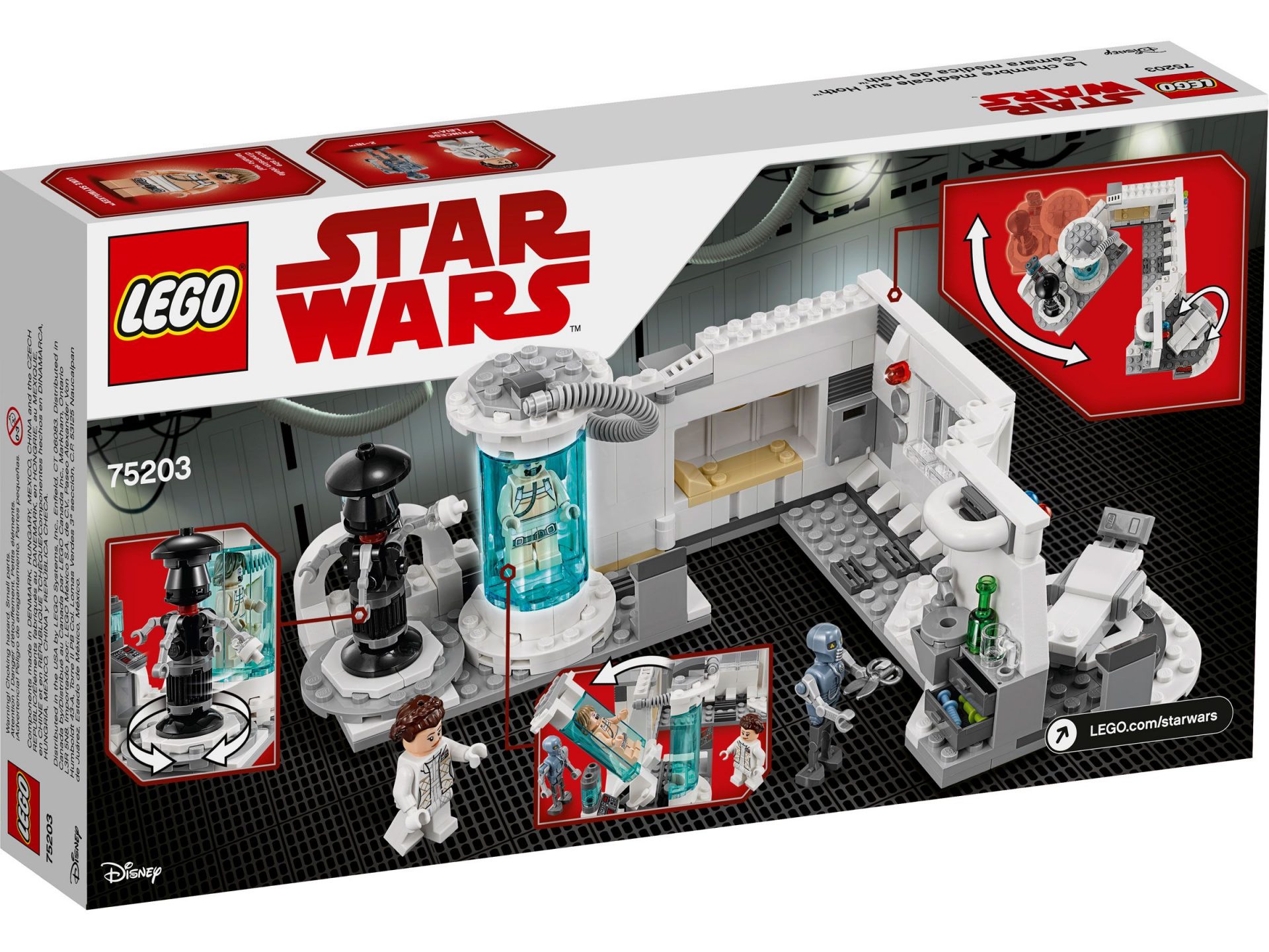 • Enthält 2 LEGO Minifiguren: Prinzessin Leia in ihrem Hoth-Outfit and Luke Skywalker sowie die Droiden 2-1B und FX-7.