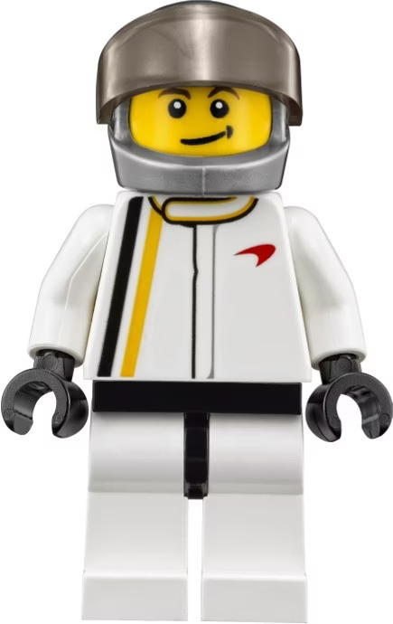 • Der Rennoverall des Fahrers ist mit McLaren-Emblemen verziert.